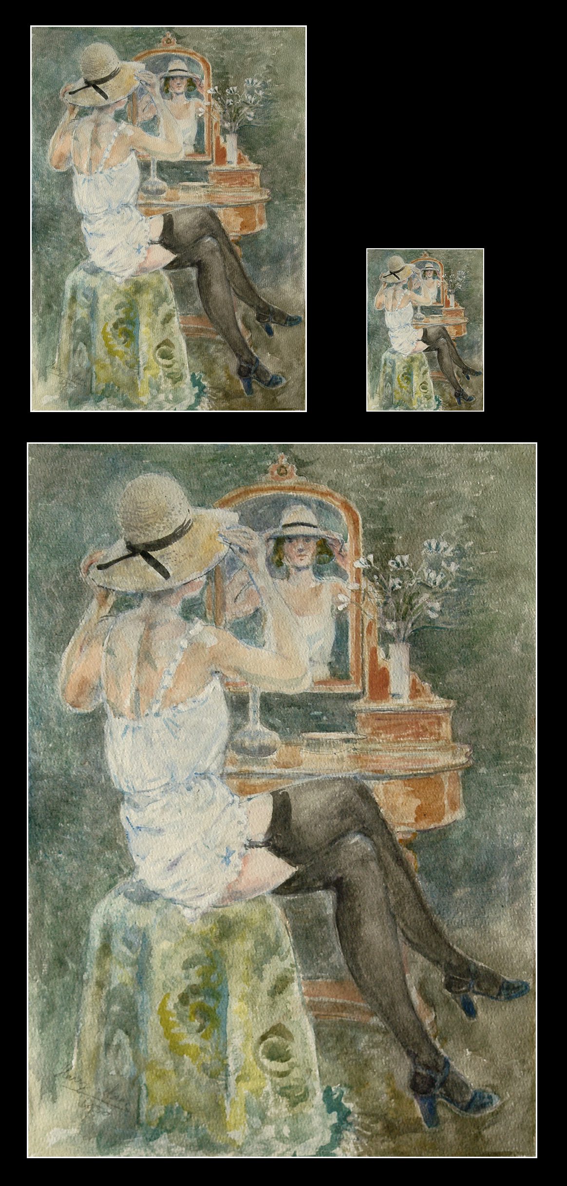 With Hat In Front Of A Mirror.